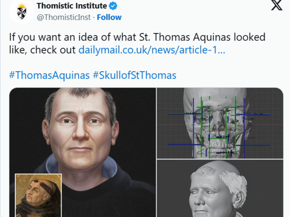 Na tragu lubanje svetog Tome Akvinskog, studija je koja je bila lani objavljena i koja donosi uvid u to kako je „anđeoski naučitelj“ mogao izgledati. Pomoću svečeve lubanje rekonstruiran je lik crkvenog učitelja koji je dao obilje mudrosti na području teologije i filozofije, objavila je Hrvatska katolička mreža.