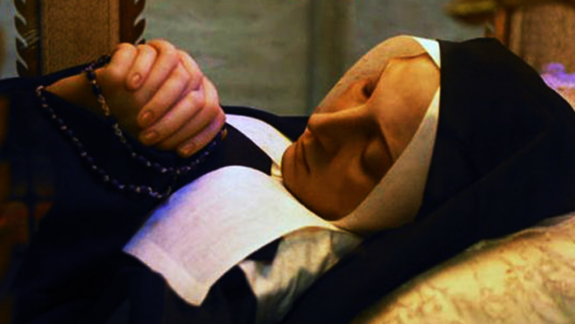 Kada to ugledah, protrljah oči, misleći da se varam. Trgnuh ruku u krilo svoje haljine, i tu nađoh svoju krunicu. Htjedoh se na čelu prekrižiti, ali ne mogoh podići ruku k čelu, i ona (krunica) ispadne. A pošto se ona Gospođa prekrižila, pokušah to i ja, premda drhtave ruke; napokon sam uspjela. Odmah počeh moliti krunicu; Gospođa je prebirala zrnca krunice, ali nije micala usnama. Kad završih krunicu, viđenja odmah nestade….
