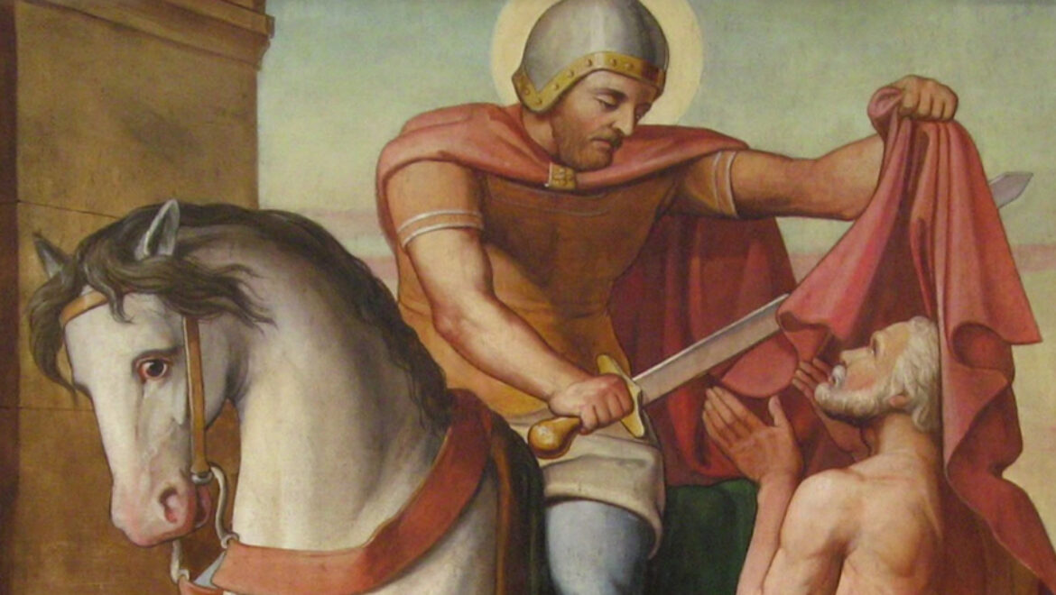 Jedne studene zimske večeri, časnik Martin, nakon dužnosti ophodnje, vraćao se u svoj vojnički tabor, sjeverno od Pariza. Odjednom se uz rub ceste stvorio jedan siromah u dronjcima, koji je drhtao od hladnoće i molio ga za milostinju. Martin kod sebe nije imao ni novca ni što drugo da mu dadne. Tada se dosjetio: uzeo je svoj širok časnički ogrtač, mačem odsjekao polovicu i podao promrzlu siromahu.