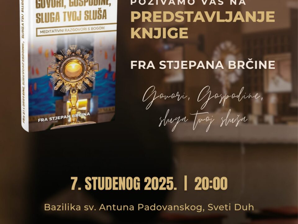 Službena promocija knjige održat će se u petak, 7. studenog 2025. u 20 sati u bazilici svetog Antuna Padovanskog na Svetom Duhu u Zagrebu. „Posebno mi je drago što će se promocija održati upravo u bazilici u kojoj je knjiga i nastajala – pred Presvetim Oltarskim Sakramentom“, kaže fra Stjepan.