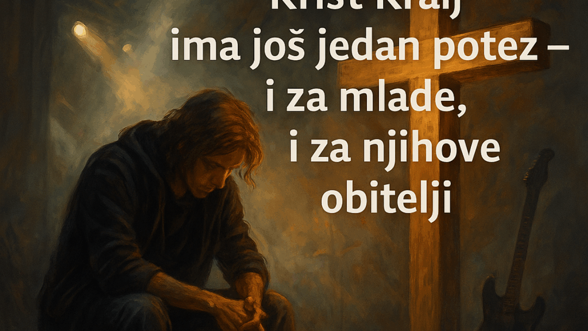 Ta rečenica je središte večeri. Jer i danas — u digitalnom kaosu, u tjeskobama mladih, u porušenim obiteljima — Kralj ima još jedan potez. Ne kralj iz bajke. Ne kralj iz dvorca. Nego Krist Kralj — raspet, izranjen, ali jedini koji vidi cijelu ploču života.